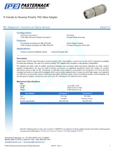 RF Adapters Technical Data Sheet PE9731