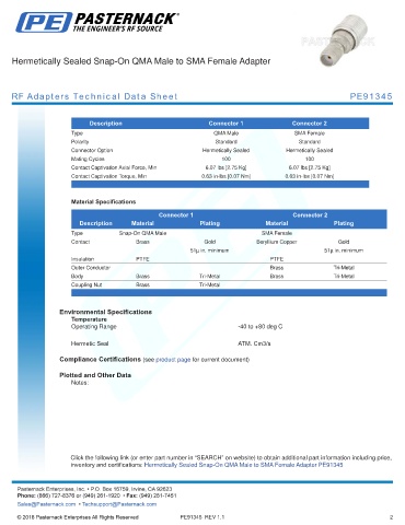 inventory and certifications: Hermetically Sealed Snap-On QMA Male to SMA Female Adapter PE91345