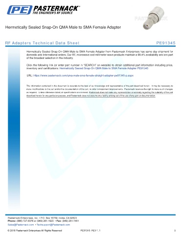 any representation or warranty regarding the suitability of the part described herein for any particular purpose, and Pasternack does not assume any liability arising out of the use of any part or documentation.
