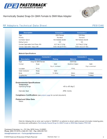inventory and certifications: Hermetically Sealed Snap-On QMA Female to SMA Male Adapter PE91346