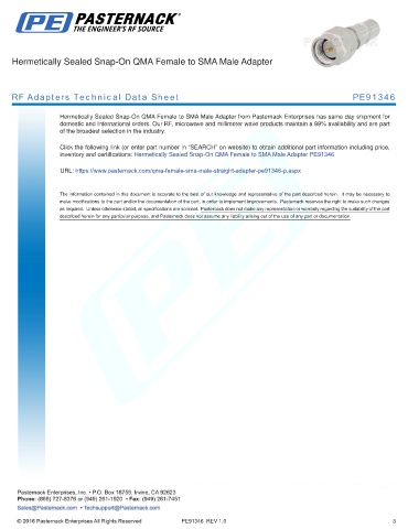 RF Adapters Technical Data Sheet PE91346