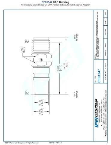 PE91347 CAD Drawing Hermetically Sealed Snap-On QMA Female to SMA Female Snap-On Adapter PE91347 REV 1.0 4