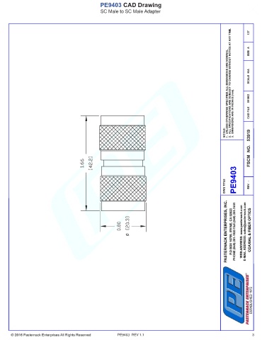 PE9403 CAD Drawing SC Male to SC Male Adapter PE9403 REV 1.1 3