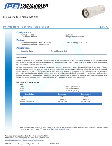 Pasternack’s PE9572 SC male to SC female adapter is part of our full line of RF components available for same-day shipping.