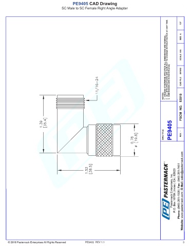 PE9405 CAD Drawing SC Male to SC Female Right Angle Adapter PE9405 REV 1.1 3