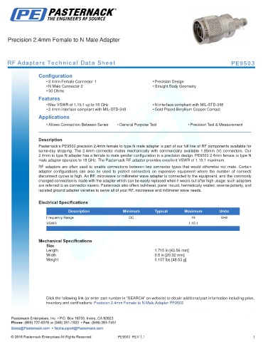 RF Adapters Technical Data Sheet PE9503