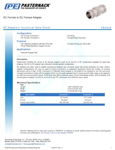 RF Adapters Technical Data Sheet PE9404