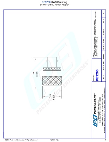 PE9200 CAD Drawing SC Male to BNC Female Adapter © 2012 Pasternack Enterprises All Rights Reserved PE9200 REV 2