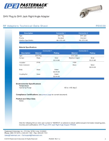 inventory and certifications: SHV Plug to SHV Jack Right Angle Adapter PE9338