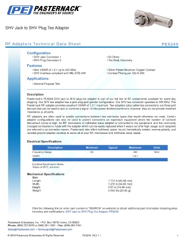RF Adapters Technical Data Sheet PE9249