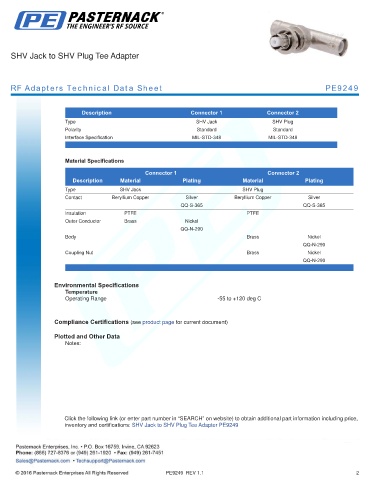 inventory and certifications: SHV Jack to SHV Plug Tee Adapter PE9249