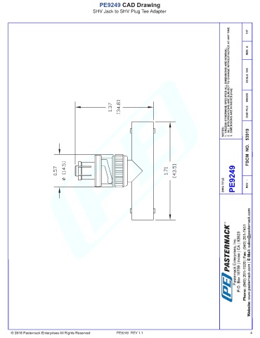 PE9249 CAD Drawing SHV Jack to SHV Plug Tee Adapter PE9249 REV 1.1 4