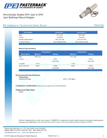RF Adapters Technical Data Sheet PE9336