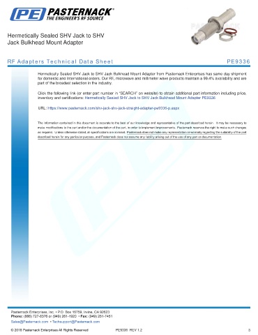any representation or warranty regarding the suitability of the part described herein for any particular purpose, and Pasternack does not assume any liability arising out of the use of any part or documentation.