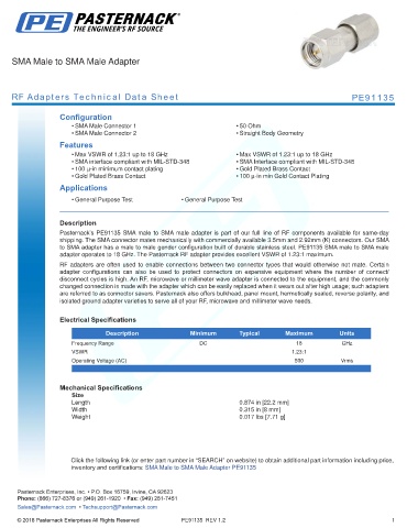 RF Adapters Technical Data Sheet PE91135