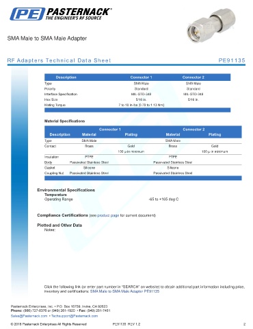 RF Adapters Technical Data Sheet PE91135