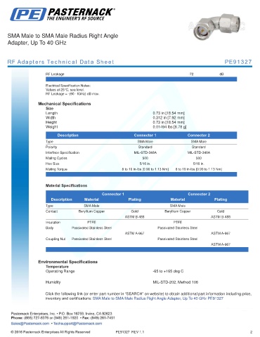 inventory and certifications: SMA Male to SMA Male Radius Right Angle Adapter, Up To 40 GHz PE91327
