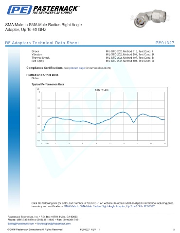 inventory and certifications: SMA Male to SMA Male Radius Right Angle Adapter, Up To 40 GHz PE91327