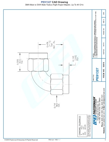 PE91327 CAD Drawing SMA Male to SMA Male Radius Right Angle Adapter, Up To 40 GHz PE91327 REV 1.1 5