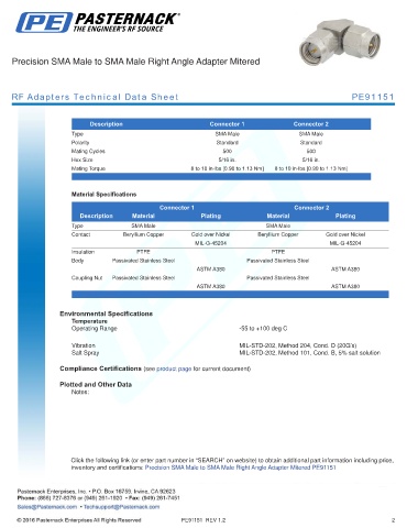 RF Adapters Technical Data Sheet PE91151