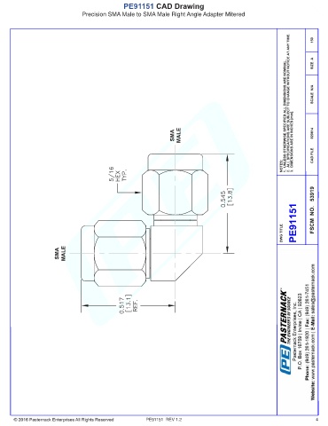PE91151 CAD Drawing Precision SMA Male to SMA Male Right Angle Adapter Mitered PE91151 REV 1.2 4