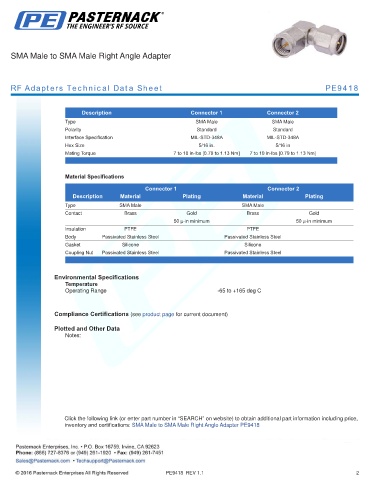 inventory and certifications: SMA Male to SMA Male Right Angle Adapter PE9418