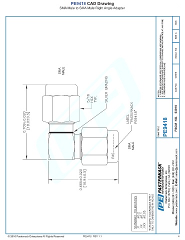 PE9418 CAD Drawing SMA Male to SMA Male Right Angle Adapter PE9418 REV 1.1 4