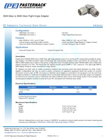 RF Adapters Technical Data Sheet PE9642