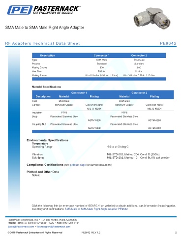 inventory and certifications: SMA Male to SMA Male Right Angle Adapter PE9642