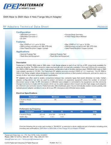 any representation or warranty regarding the suitability of the part described herein for any particular purpose, and Pasternack does not assume any liability arising out of the use of any part or documentation.
