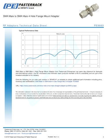 any representation or warranty regarding the suitability of the part described herein for any particular purpose, and Pasternack does not assume any liability arising out of the use of any part or documentation.