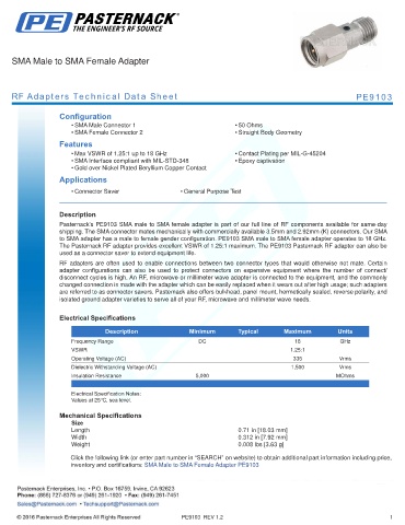RF Adapters Technical Data Sheet PE9103