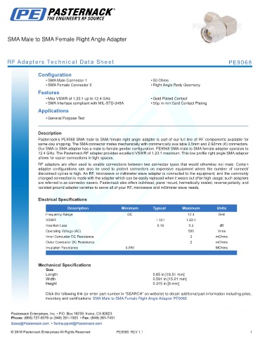 inventory and certifications: SMA Male to SMA Female Right Angle Adapter PE9068