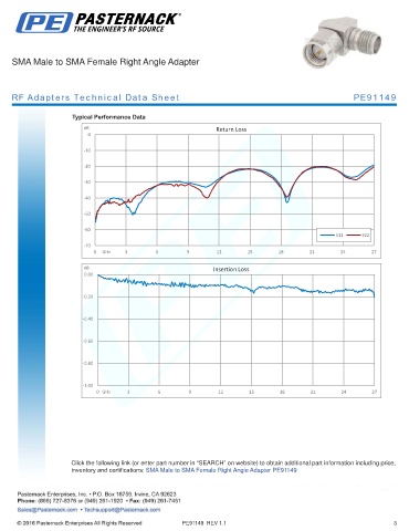 inventory and certifications: SMA Male to SMA Female Right Angle Adapter PE91149