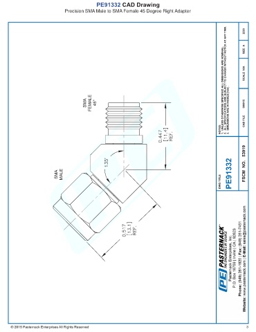 PE91332 CAD Drawing Precision SMA Male to SMA Female 45 Degree Right Adapter 3
