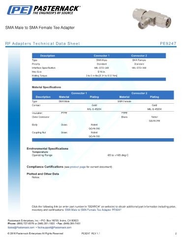 inventory and certifications: SMA Male to SMA Female Tee Adapter PE9247
