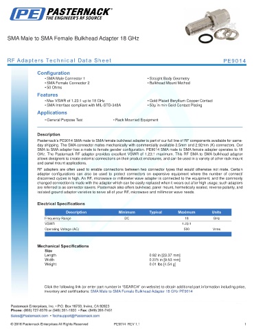 inventory and certifications: SMA Male to SMA Female Bulkhead Adapter 18 GHz PE9014