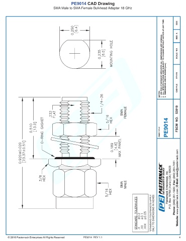 PE9014 CAD Drawing SMA Male to SMA Female Bulkhead Adapter 18 GHz PE9014 REV 1.1 4