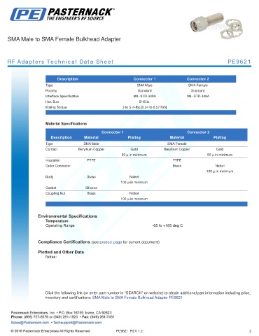 inventory and certifications: SMA Male to SMA Female Bulkhead Adapter PE9621
