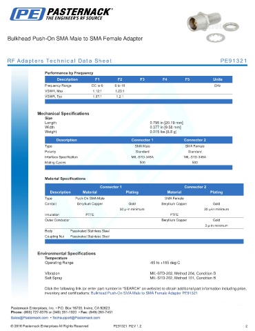 inventory and certifications: Bulkhead Push-On SMA Male to SMA Female Adapter PE91321