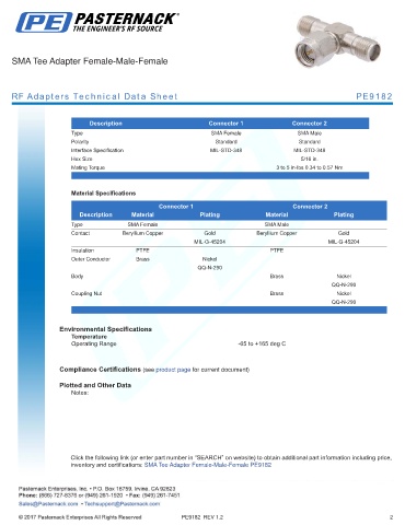 inventory and certifications: SMA Tee Adapter Female-Male-Female PE9182