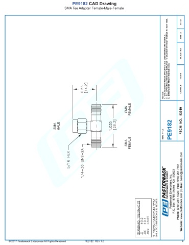 PE9182 CAD Drawing SMA Tee Adapter Female-Male-Female PE9182 REV 1.2 4