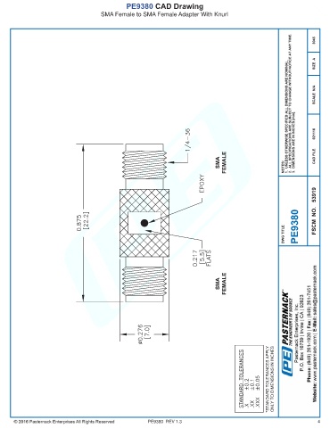 PE9380 CAD Drawing SMA Female to SMA Female Adapter With Knurl PE9380 REV 1.3 4