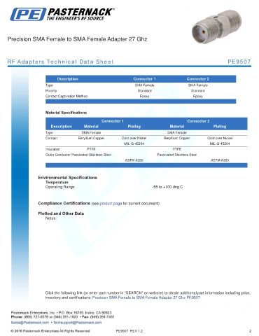 RF Adapters Technical Data Sheet PE9507