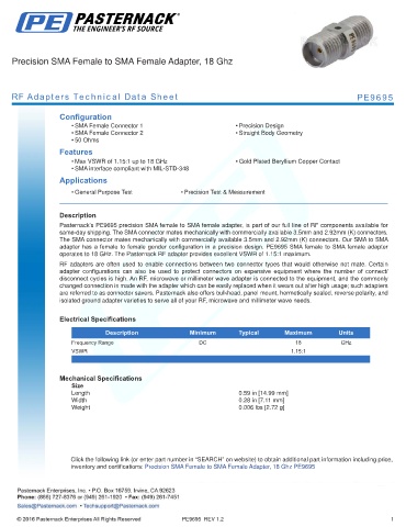 inventory and certifications: Precision SMA Female to SMA Female Adapter, 18 Ghz PE9695