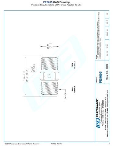 PE9695 CAD Drawing Precision SMA Female to SMA Female Adapter, 18 Ghz PE9695 REV 1.2 4