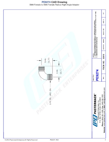 PE9274 CAD Drawing SMA Female to SMA Female Radius Right Angle Adapter © 2012 Pasternack Enterprises All Rights Reserved PE9274 REV 3