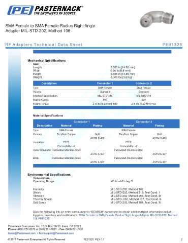RF Adapters Technical Data Sheet PE91325