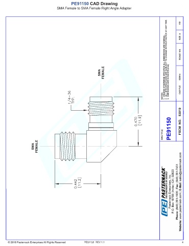 PE91150 CAD Drawing SMA Female to SMA Female Right Angle Adapter PE91150 REV 1.1 4