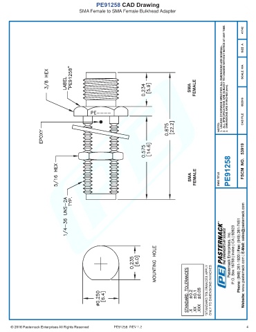 PE91258 CAD Drawing SMA Female to SMA Female Bulkhead Adapter PE91258 REV 1.2 4